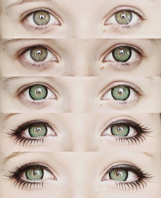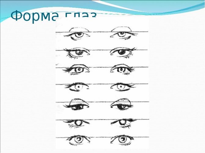 Pokud je záhyb viditelný, je třeba se podívat na poslední bod. Měla by se vyšetřit veverčí vrstva očí - pokud dívka vidí bělmo nahoře a dole, pak jsou její oči kulaté, pokud ne - mandlové.