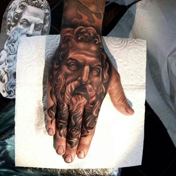 Muž zvyklý nést na svých ramenou těžké břemeno velké odpovědnosti, s tetováním Dia může úspěšně zdůraznit pevnost svých záměrů. Tento typ mužského tetování může být nejlepší volbou, pokud je cílem vedoucí pozice na vyšší úrovni. Kariérní dráha je zajímá nikoli jako prostředek k získání materiálního bohatství, ale jako cesta k moci a autoritě. Držitelé tetování jsou vynikajícími vůdci, mírně přísnými, ale vždy spravedlivými. Pro tetování zvolte přísný grafický styl nebo realisticky provedené předměty v monochromatickém barevném schématu, kde je nejvyšší bůh se zbraní v ruce nebo ve voze taženém orly.