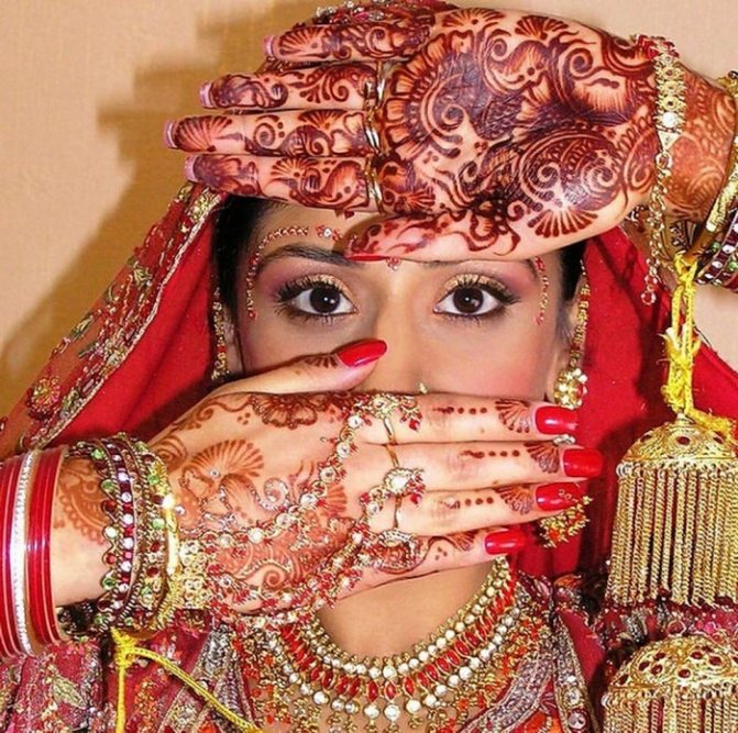 V moderní Indii je malování hennou na tělo rituálem. pro svatební obřad. Používají se pro ženy, které se připravují na svatbu. Použitá barva je červená.