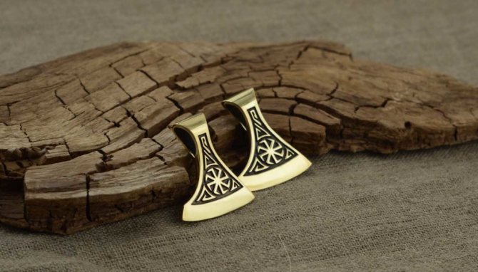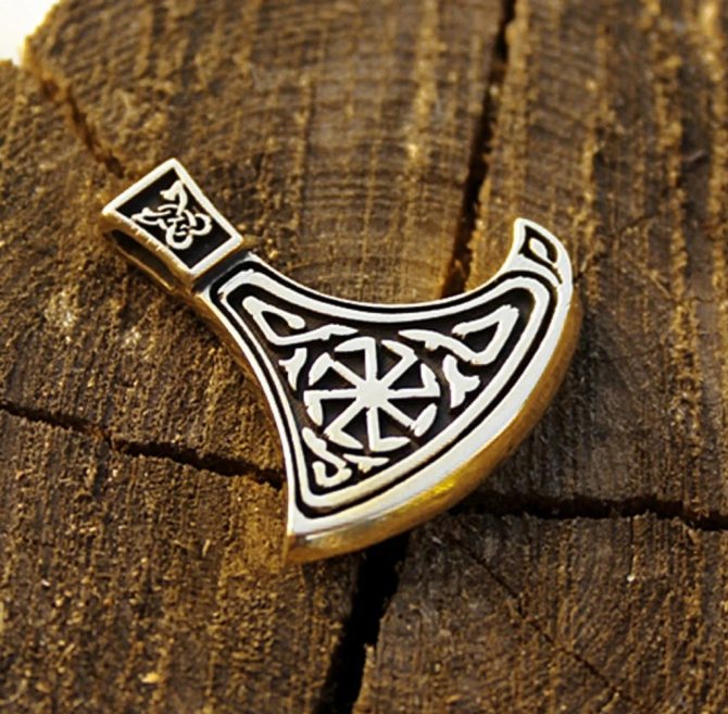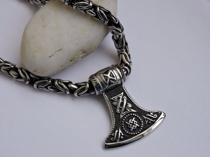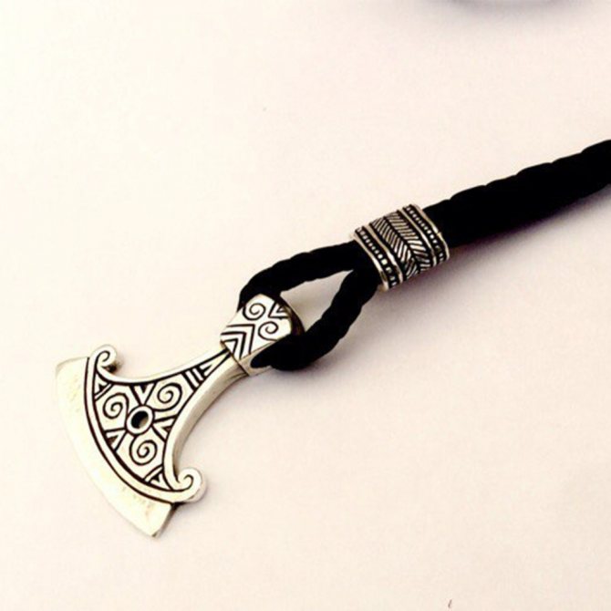 Z tohoto důvodu začali válečníci používat sekeru jako ochrannou zbraň, která nejen pomáhala porazit nepřítele, ale také udržovala život v boji. Původně se nosil na opasku, ale později se jeho rozměry zmenšily na velikost talismanu, který byl zdoben ornamenty, runami a nosil se na krku.