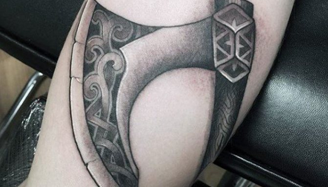 - Tetování by mělo znázorňovat dvě čepele sekery, lepší by bylo znázornit dva nástroje.