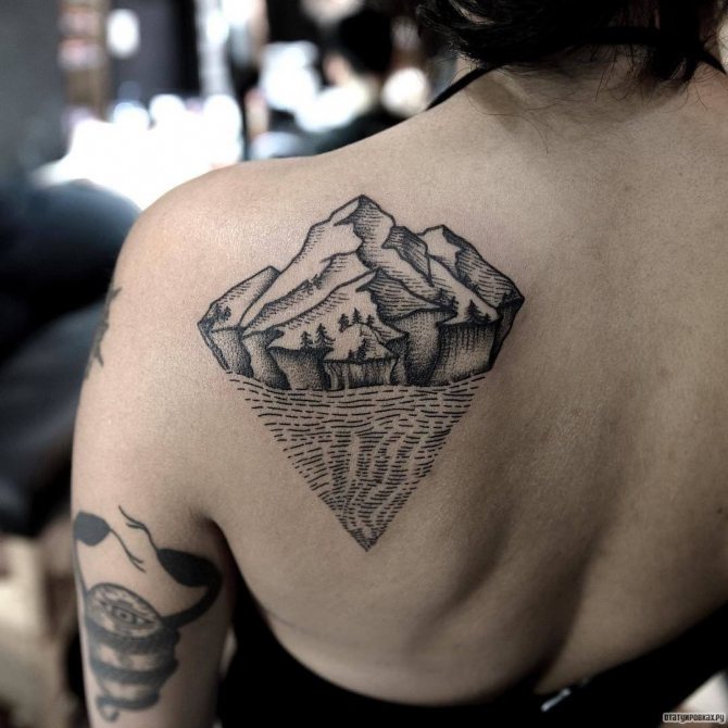 Pravidelný rovnoramenný trojúhelník je jako náčrt velmi vzácný. Obvykle je doplněn různými kompozicemi a kresbami, i když minimalistický design trojúhelníku vypadá docela elegantně. Existuje mnoho různých vzorů, v nichž je trojúhelník hlavním prvkem. Ostré úhly trojúhelníku na těle jsou kompenzovány doprovodnými detaily, které jsou většinou provedeny v hladkých obrysech. Pokud je například na trojúhelníku vyobrazen strom, znamená to pouze to, že nositel miluje a váží si života ve všech jeho projevech. A linie, které ohraničují obraz stromu, symbolizují cykličnost. Mezi různými vzory tetování s trojúhelníky lze jistě najít vhodný.