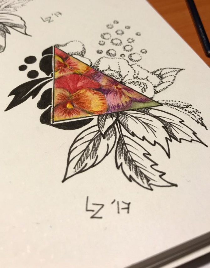 Úhledné trojúhelníky často doplňují kresby s květinovými motivy, krajiny a méně často portréty. Obzvláště oblíbené jsou barevné akvarely s motivy vesmíru nebo moře. U těchto návrhů je trojúhelník jakýmsi rámem.