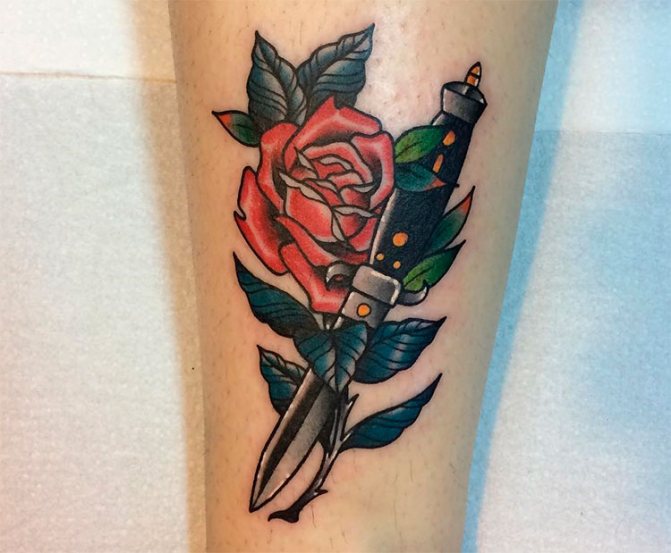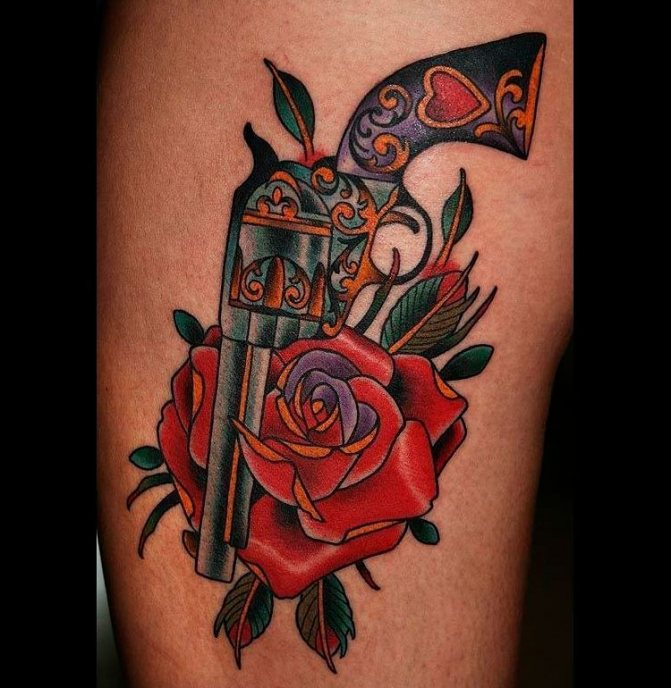 Další význam tetování vychází z opačného významu zbraně a růže - snaha o změnu a řešení problémů mírovou cestou, nikoliv silou.
