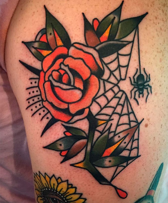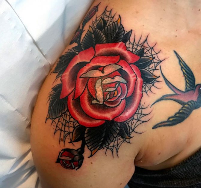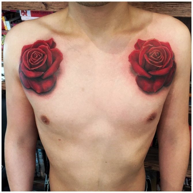 Růže na mužském těle znamená lásku, nejčastěji k dívce. Pokud je květina okovaná nebo krvácí a trčí z ní dýky, znamená to silné pocity a bolest.
