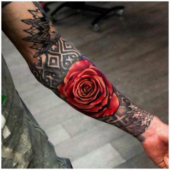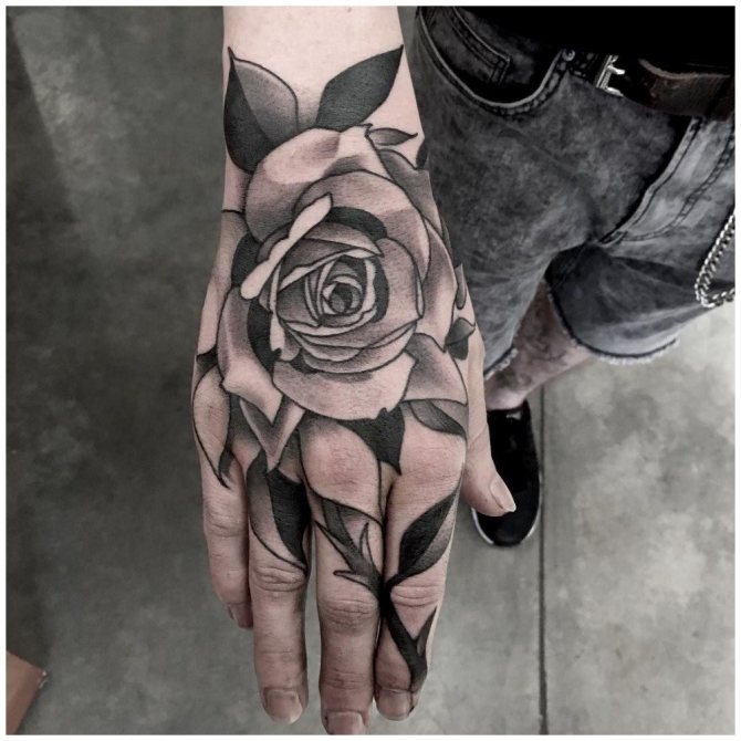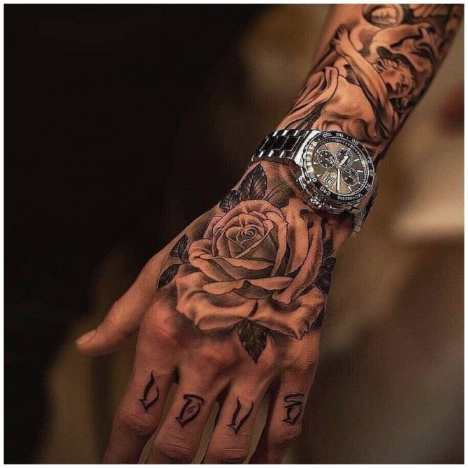 Mužské tetování růže na ruce znamená, že nositel obrázku má vášnivé pocity pro ženu, kterou miluje. Ona je pro něj ta jediná a on o tom chce všem říct.