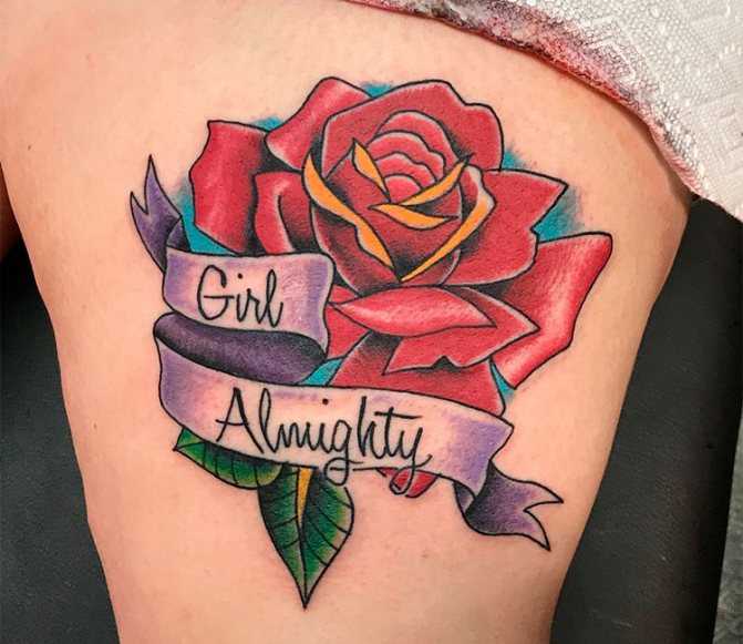 Velmi často si dívky vybírají obrázek ve tvaru trojúhelníku vyplněného květinovými motivy. Nejběžnější z nich jsou růže. Tetováním růže v trojúhelníku na sebe dívka upozorňuje. Tato natální kompozice vypadá skvěle v malém i velkém formátu. Umístění trojúhelníkového tetování s růžemi může být velmi odlišné. Vše závisí na zvolené velikosti. Obecně se hodnota kombinace trojúhelníku a růže vykládá jako ženská energie. Zástupci něžného pohlaví, na jejichž těle je možné vidět tetování s růží v kombinaci s trojúhelníkem, se liší zvláštním vztahem k umění, hudbě a kreativitě obecně.