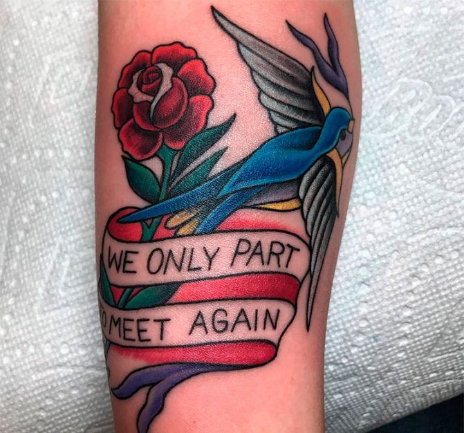 Tento pták a květina se krásně doplňují, protože společně tvoří ucelenou kompozici. Jejich význam je jednoduchý a ideální pro dívky - je to mládí, lehkost a krása.