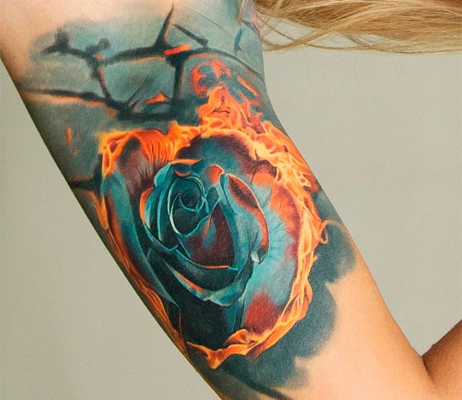 Růže symbolizuje vás a váš život a oheň představuje zkoušky, kterými procházíte. Pokud se květina v návrhu tetování nepromění v popel, znamená to, že jste silnější než výzvy. Také hořící růže může znamenat, že krásná část vaší minulosti byla spálena a je čas jít dál.