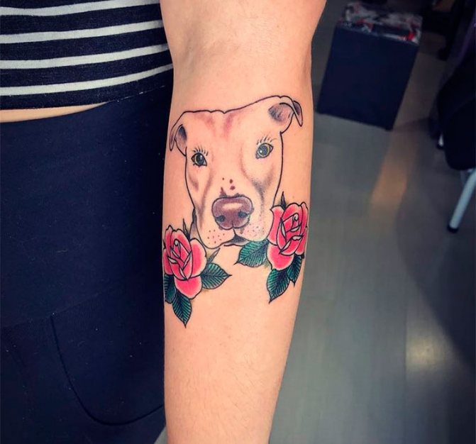 Na památku psa si můžete nechat udělat tetování. Existuje také možnost, aby lidé vyjádřili své povahové rysy prostřednictvím obrázků v tetování. Pitbul představuje sílu ducha a fyzickou odolnost, zatímco růže romantiku a něhu.