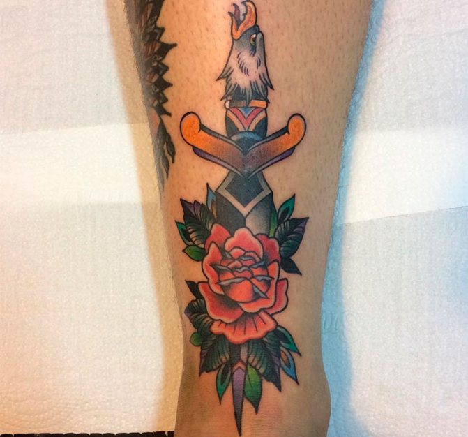 Diamant znamená sílu, ochranu před zničením. Růže naopak symbolizuje život, lásku a krásu. Kombinace těchto vlastností může být jedním z významů tetování.