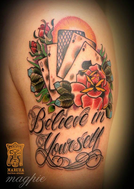 Existují Malé a střední Tetování s hracími kartami, kostkami nebo kostkami domina. Ty jsou mnohem hezčí a přitažlivější než větší obrázky.