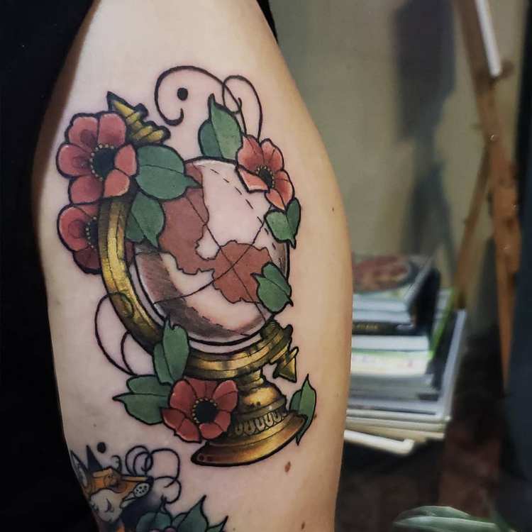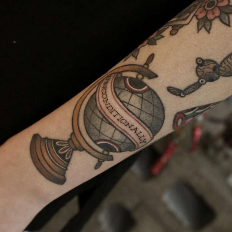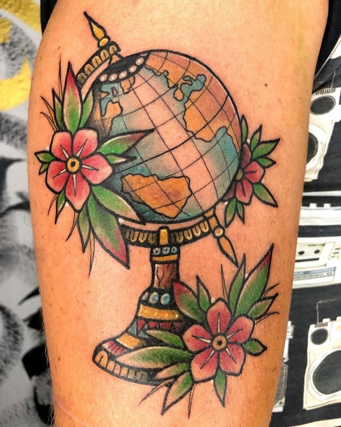 Tetování glóbu může naznačovat, že jeho nositel je cestovatel, diplomat nebo mírotvůrce.