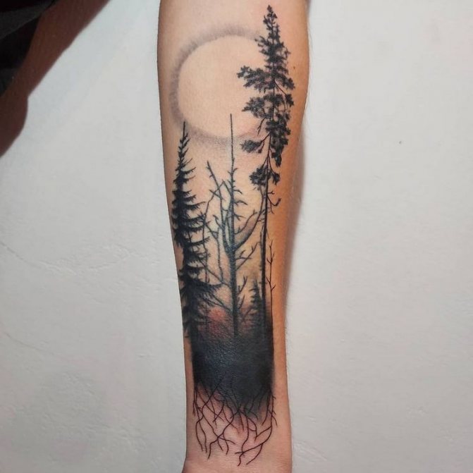 Tetování lesa je dvojznačné - může být jasné a pozitivní, ale může také přinášet chmurné myšlenky, a dokonce vyvolávat strach. Proto stojí za to velmi dobře promyslet náčrt takového tetování.