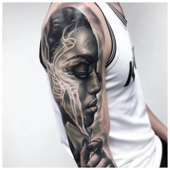 Krásně vypadají také černobílá tetování s barevnými prvky. Muži většinou volí červené, hnědé a šedé odstíny jako doplněk ke skice. Dalšími oblíbenými odstíny jsou modrá a zelená, méně často oranžová.