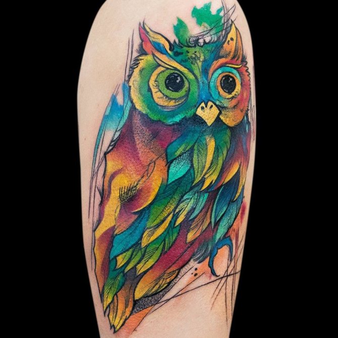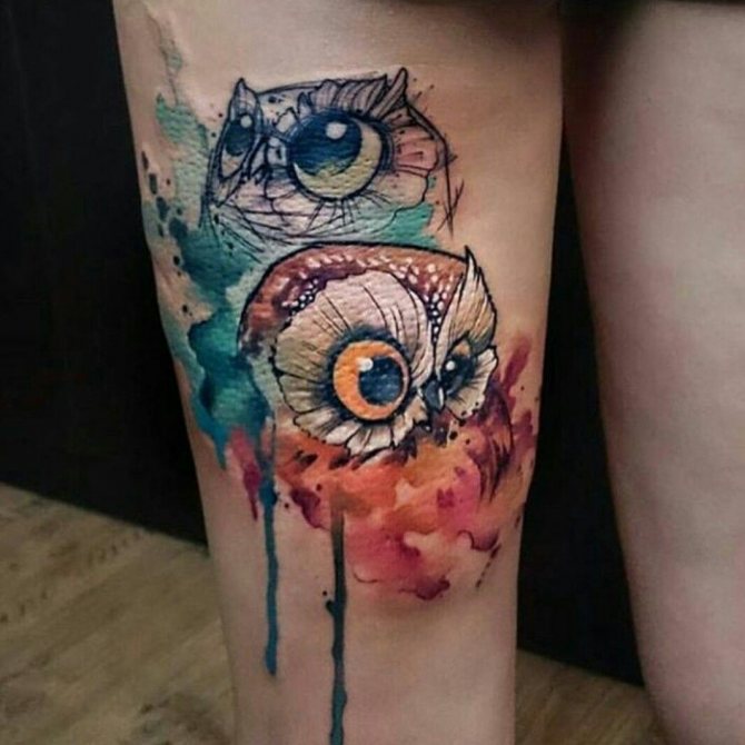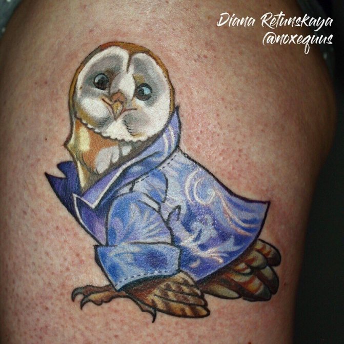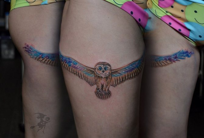 Příslušnice něžného pohlaví si na tělo nejraději kreslí abstraktní nebo kreslené náčrty se sovou. Taková kresba na noze nebo ruce symbolizuje tajemství. Kosmický obrázek zobrazuje bezstarostný a veselý život sovy. Jasné, barevné motivy vyjadřují dívčinu otevřenost a schopnost socializace.