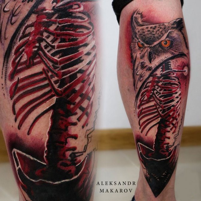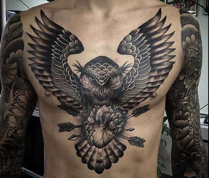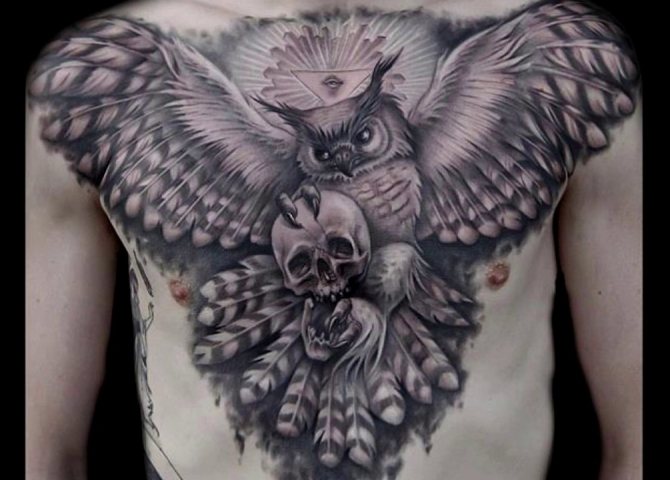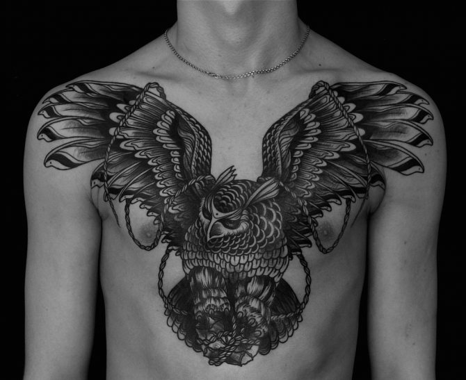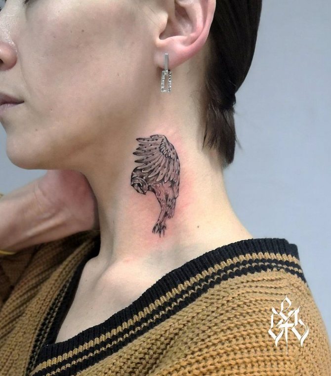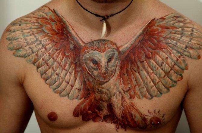 Obraz ptáka na zádech sebevědomě vypovídá o svobodě a síle lidského ducha, zejména pokud je pták zobrazen s rozevřenými křídly. Takové obrazy jsou často jedinečné kompozice velkých rozměrů. Tetování na krku je vzácné a chrání nositele před vlivem zlých sil. Chuť do života a individualita jsou charakteristické pro kresby na hrudi a pro mladé dámy jsou odvážnou demonstrací ženskosti. Náčrtek tetování soví nohy je symbolem zřeknutí se utrpení a bolesti.