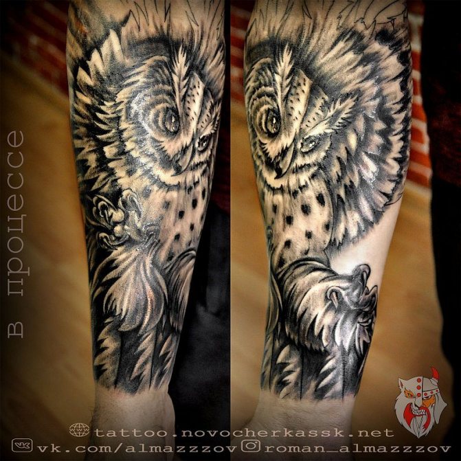 Význam tetování sovy se liší v závislosti na výběru místa na těle. V takovém případě si pečlivě rozmyslete, jaký styl tetování zvolit. Chcete-li přidat moudrost, nakreslete skicu ve stylu akvarelu, použijte jasné barvy, často nahrazující oči ptáka na šperku nebo ciferníku hodin, čímž tetování dodáte hloubku a filozofický význam. Pokud je cílem převzít od nočního ptáka sílu, moc a tajemství, tetování je nejlepší provést v černé a bílé barvě a sova je zobrazena v letu nebo s roztaženými křídly. Při výběru místa na těle pro tetování stojí za to rozhodnout o hlavním účelu. Koneckonců, pokud to má být talisman, neměli byste ho ukazovat a ukazovat všem. Vhodné je ochranné tetování na zádech, hrudníku a stehnech. Výběr exponovaných míst, jako je krk, paže, předloktí a dolní část paží, dodá tetování na síle. Koneckonců, čím více lidí ho uvidí, tím více energie bude tetování svému nositeli dodávat.