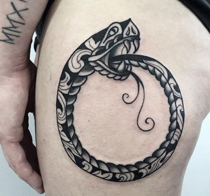 Vzory Ouroboros si oblíbili milovníci tetování všech věkových kategorií a pohlaví. Jedinečnost unikátního designu umožňuje zdobit prostor ramen, zad a hrudníku, stejně jako horní a dolní končetiny, umístit na krk obrázek s vícehodnotovým symbolem.