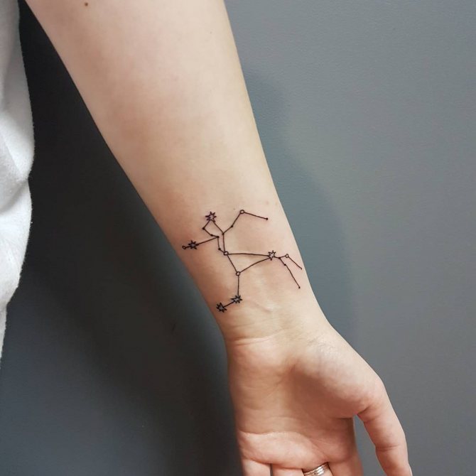Je třeba poznamenat, že ve starověku to byly hvězdy, které lidem pomáhaly orientovat se v prostoru a cestovat po světě. Proto se nyní uznává, že majitel takového tetování vždy najde v životě správnou cestu bez ohledu na vnější okolnosti. Souhvězdí vám totiž vždy posvítí na cestu, dodá naději i v těch nejtěžších situacích a pomůže překonat všechny překážky.