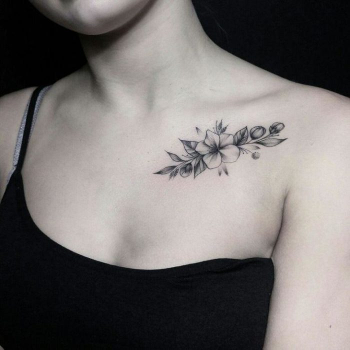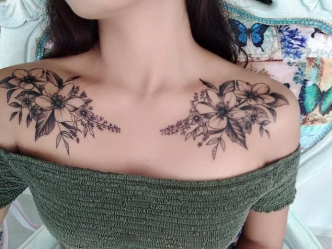 Tetování květin na klíční kosti je oblíbenou možností, je to ženské, krásné tetování. Obraz květiny nese určitý symbolický význam.