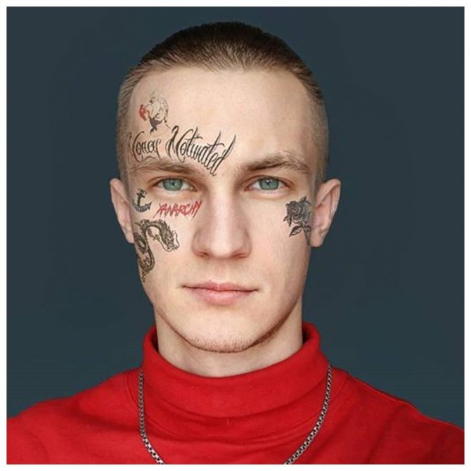Tetování obličeje je obecně vzato samostatnou formou umění. Odvážní, trendy a odvážní kluci a holky se k tomuto kroku odhodlají. Ve většině případů se jedná buď o ty, kteří rap poslouchají, nebo o samotné interprety. Ale mezi sportovci a ještě více mezi podnikateli je těch, kteří by si na to troufli, velmi málo.