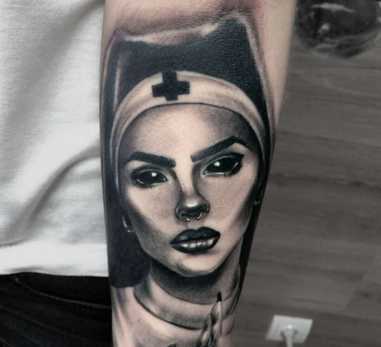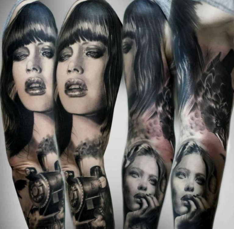 Kompozicí může být obrázek krásné holčičky, kterou znáte, nebo krásné modelky. Toto tetování nemusí mít konkrétní význam jako jiná tetování, ale bude vypadat velmi elegantně.