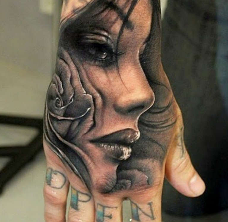 Tetování na dlani je považováno za prostředek pobouření a dekorativní prvek, kterým člověk vyjadřuje svou osobnost a styl. Vhodné jsou také malé, minimalistické a stručné čmáranice. Obvykle se jedná o dívčí tvář v kombinaci s jiným předmětem nebo dekorací. Tetování dlaní se používá jen zřídka, stejně jako tetování prstů, kam se výše uvedené motivy jednoduše nehodí.