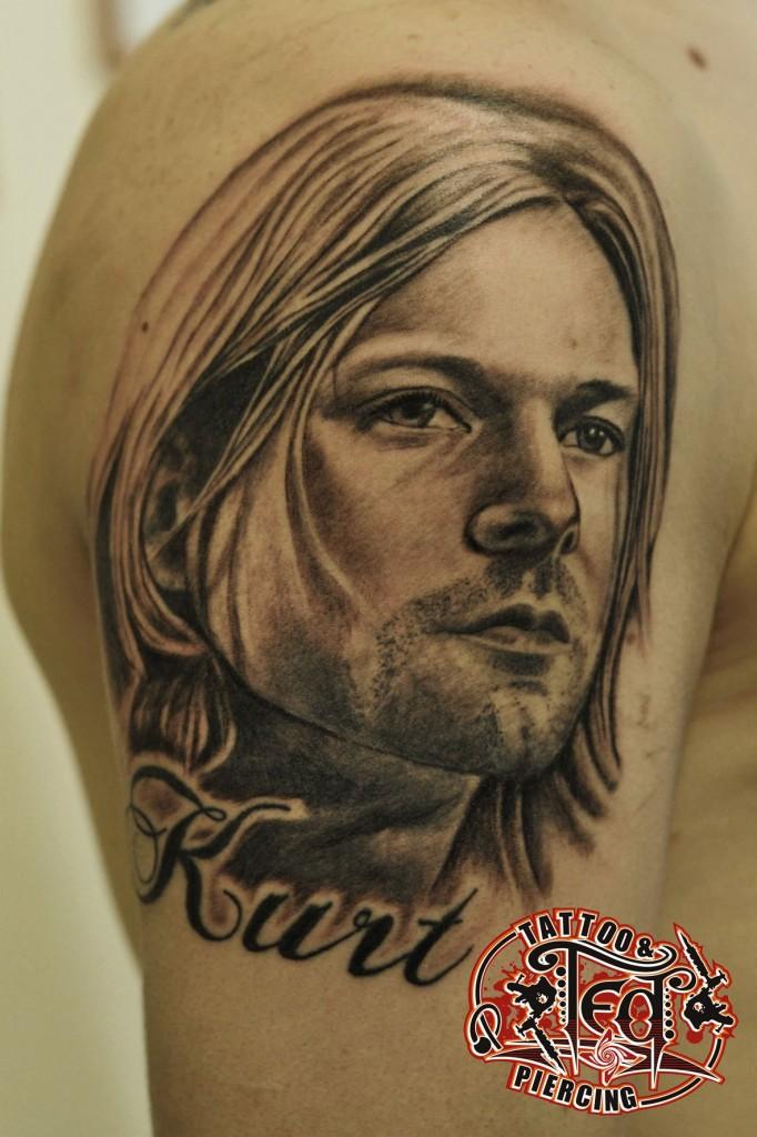 Mistr Timur (Ted). Tetování portrétu Kurta Cobaina