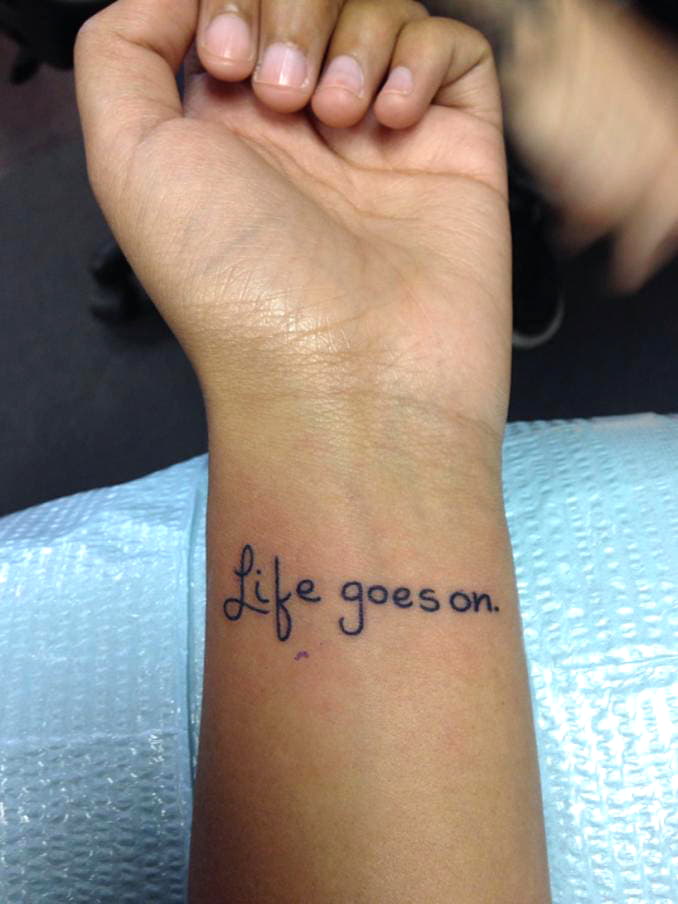 Význam tetování je individuální. Fráze, která evokuje určité životní období, konkrétní událost nebo odráží pohled na svět. Proto se nenechte odradit, pokud má někdo podobný obrázek - pro každého má osobní význam.