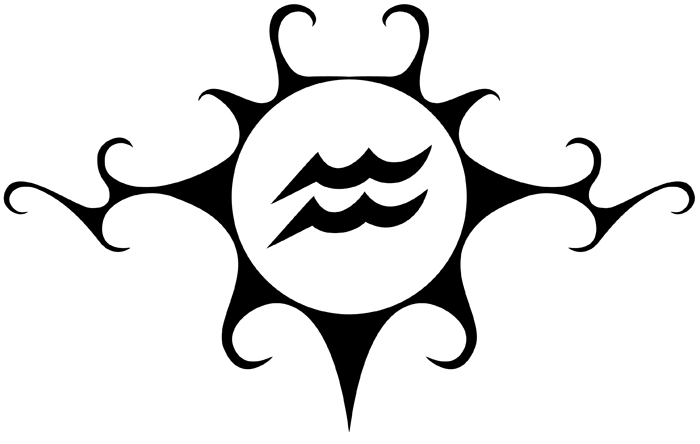 Glyf Vodnáře představuje dvě vodorovné vlny. Je to základ, z něhož lze vytvořit zajímavý koncept. Například změňte tvar vln, zostřete je nebo proveďte něco podobného kaligrafii. Můžete také přidat pozadí a další detaily ve formě kapek.