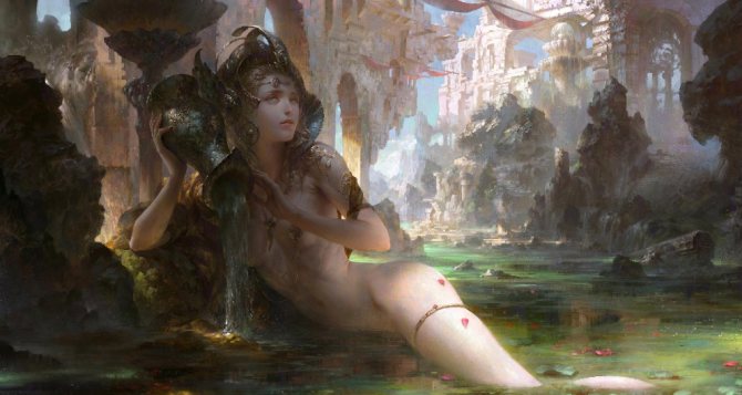 Někteří raději nahrazují muže krásnou dívkou nebo vodními nymfami, mořskými pannami a dokonce Poseidonem s trojzubcem. Nejčastěji se vznášejí, drží živly na svém těle, ocase nebo na vlnách.