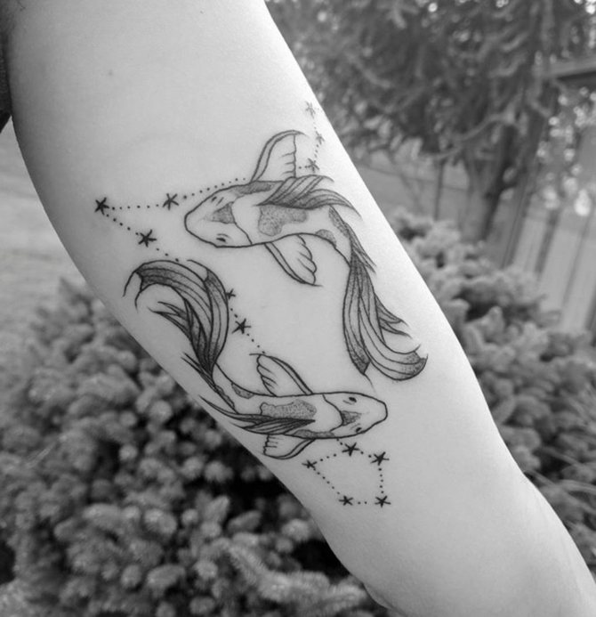 Pokud chcete zdůraznit svou kreativní stránku nebo sklon ke snění, můžete své tetování doplnit obrázky esoterických předmětů nebo kosmických objektů. V kombinaci s hvězdami, meteority, planetami a satelity vypadá tetování souhvězdí ryb obzvlášť dobře.