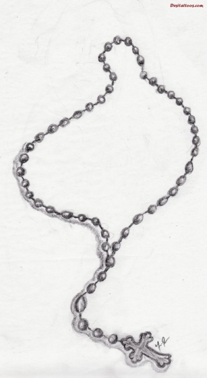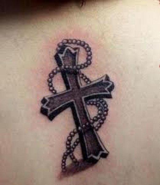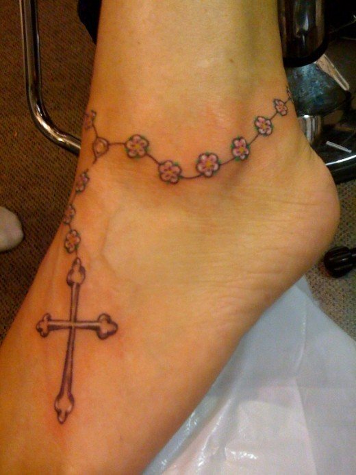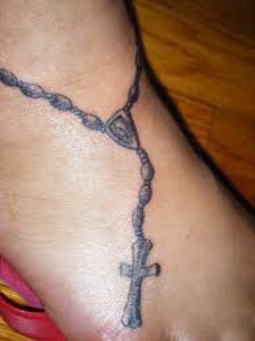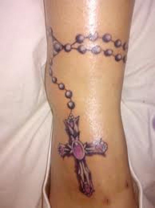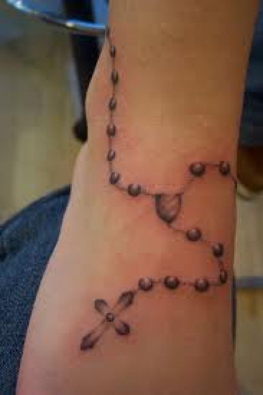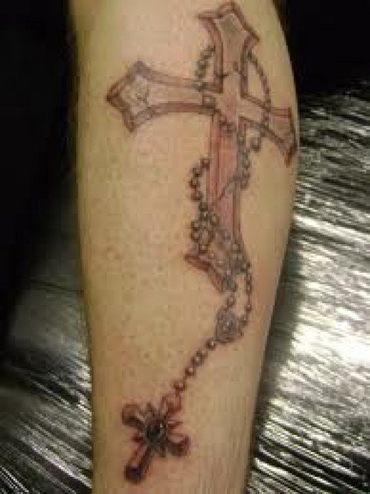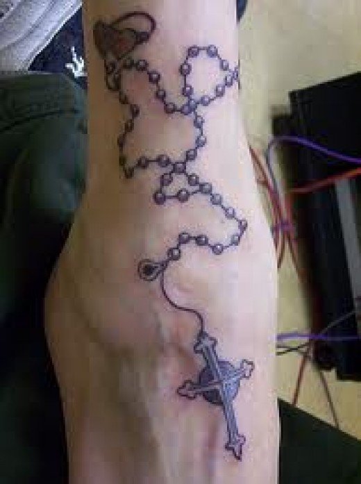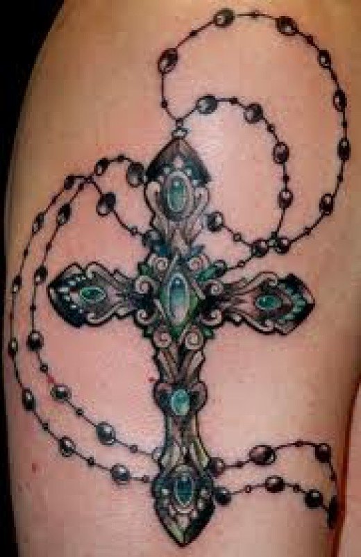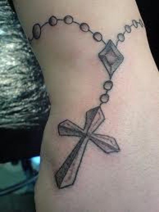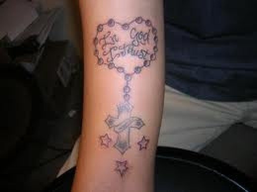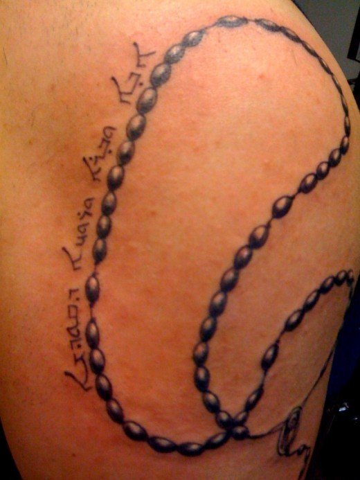 Klasický růženec se skládá z 55 korálků a křížku na konci. Tetování však můžete doplnit:
