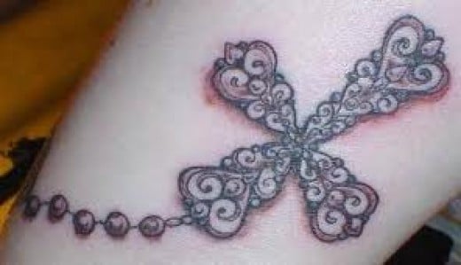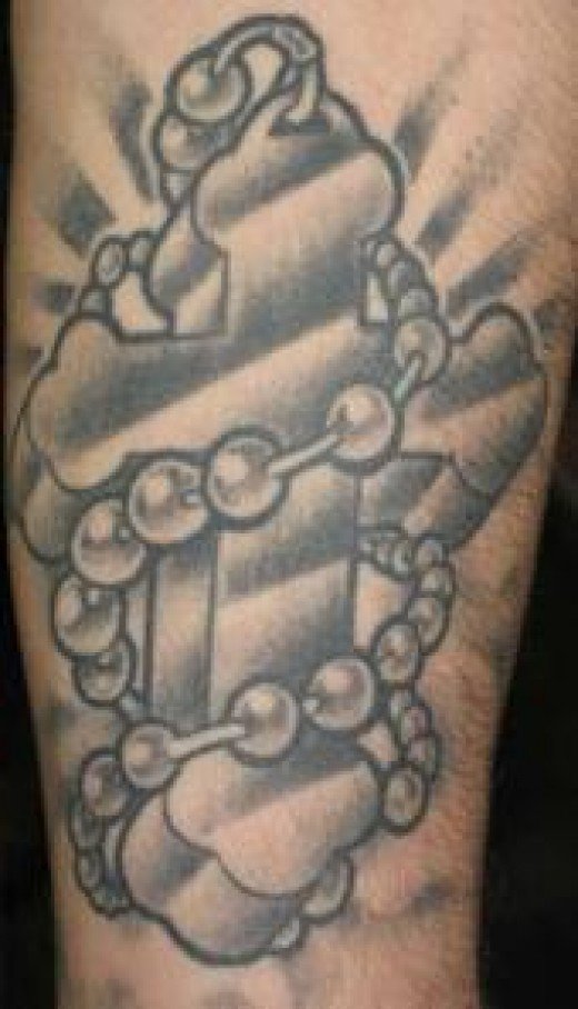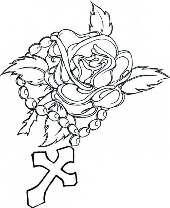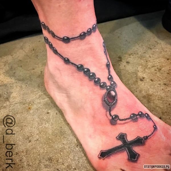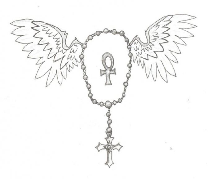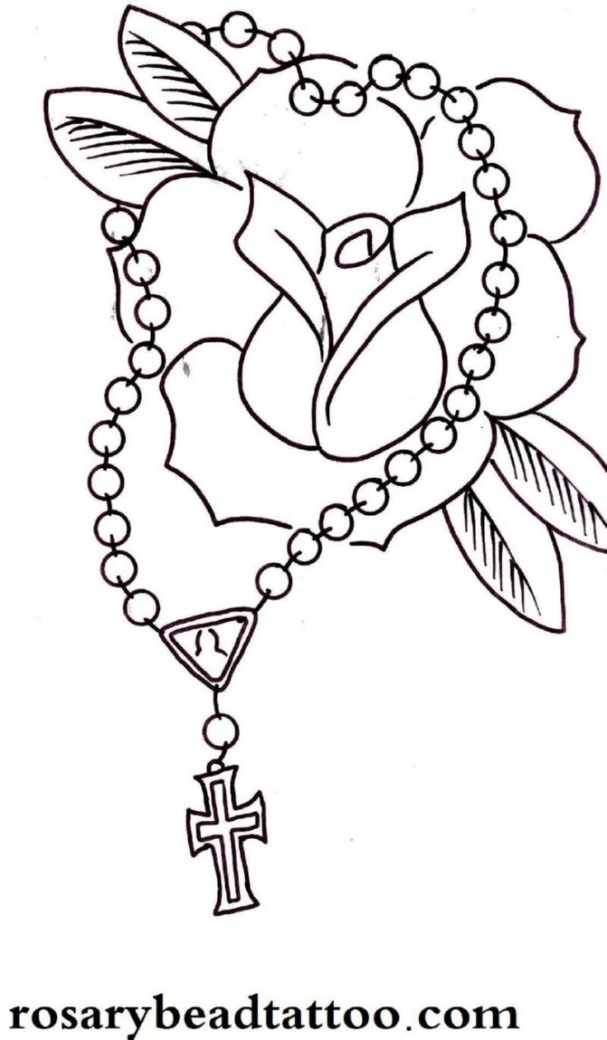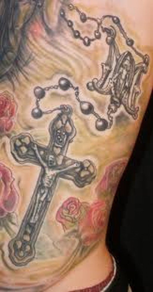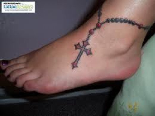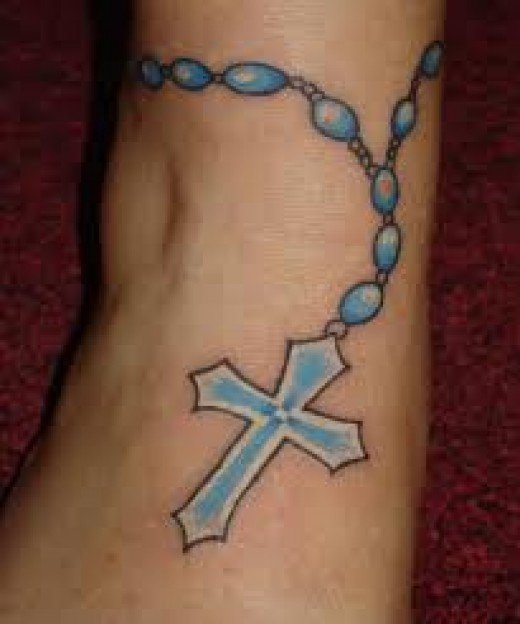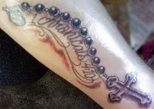 Klasický růženec se skládá z 55 korálků a křížku na konci. Tetování však můžete doplnit: