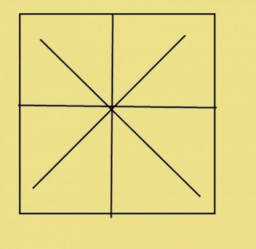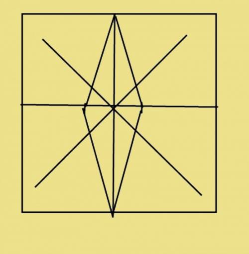 Nakreslete obě úhlopříčky a najděte jejich průsečík. Přes něj nakreslete svislou čáru. Její délka by měla být rovna délce úhlopříčky a její průsečík dělí tuto středovou čáru na polovinu. Středem konstrukce nakreslete vodorovnou čáru, která bude přesně stejně dlouhá jako svislá čára. Máte 8 paprsků stejné délky.