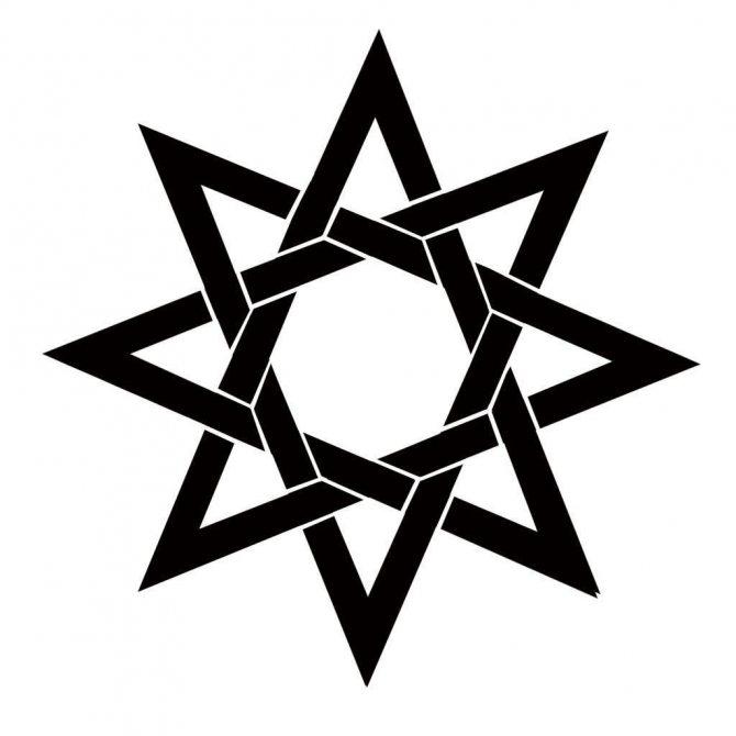 - Ve znaku jsou dva kříže (dvě čtyřcípé hvězdy), které se uprostřed protínají. Základy stvoření se spojily v jedno znamení. Takový vícebodový obraz se používá v symbolice některých států.