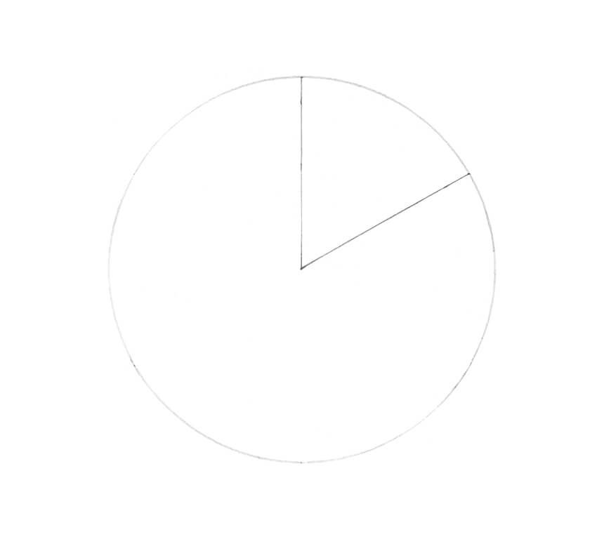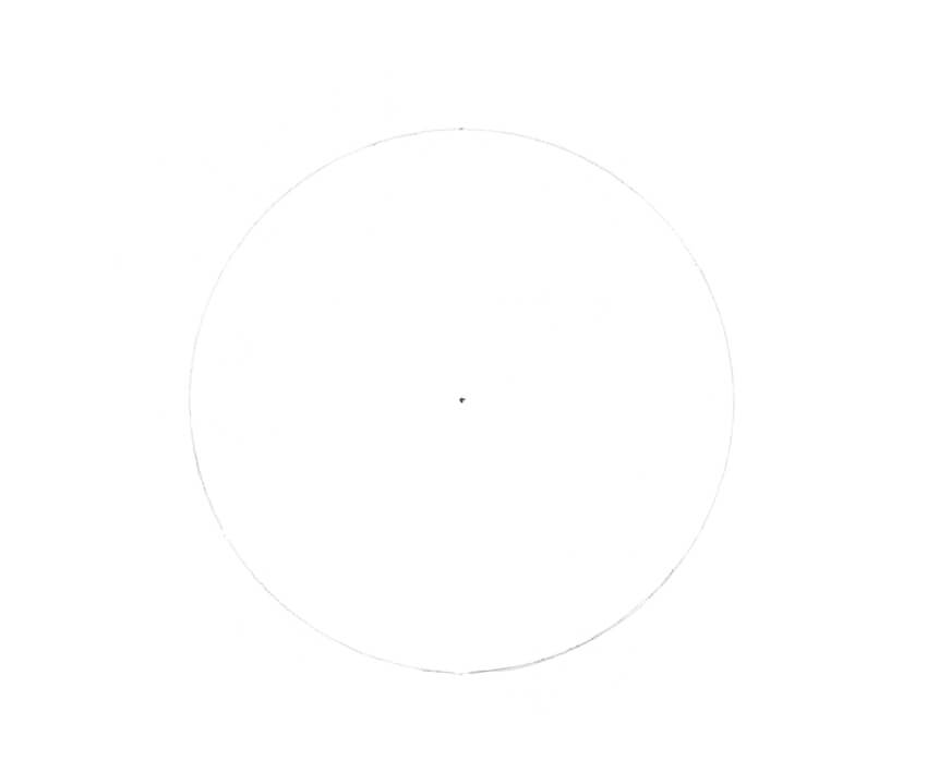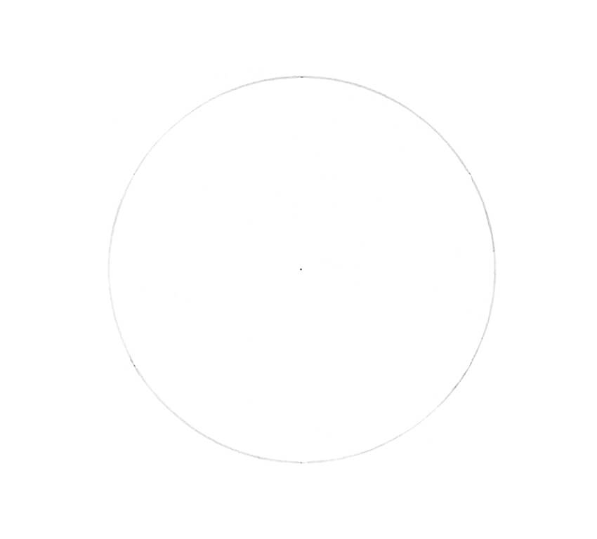 Tužkou vyznačte středový bod a úhloměrem nakreslete velký kruh.