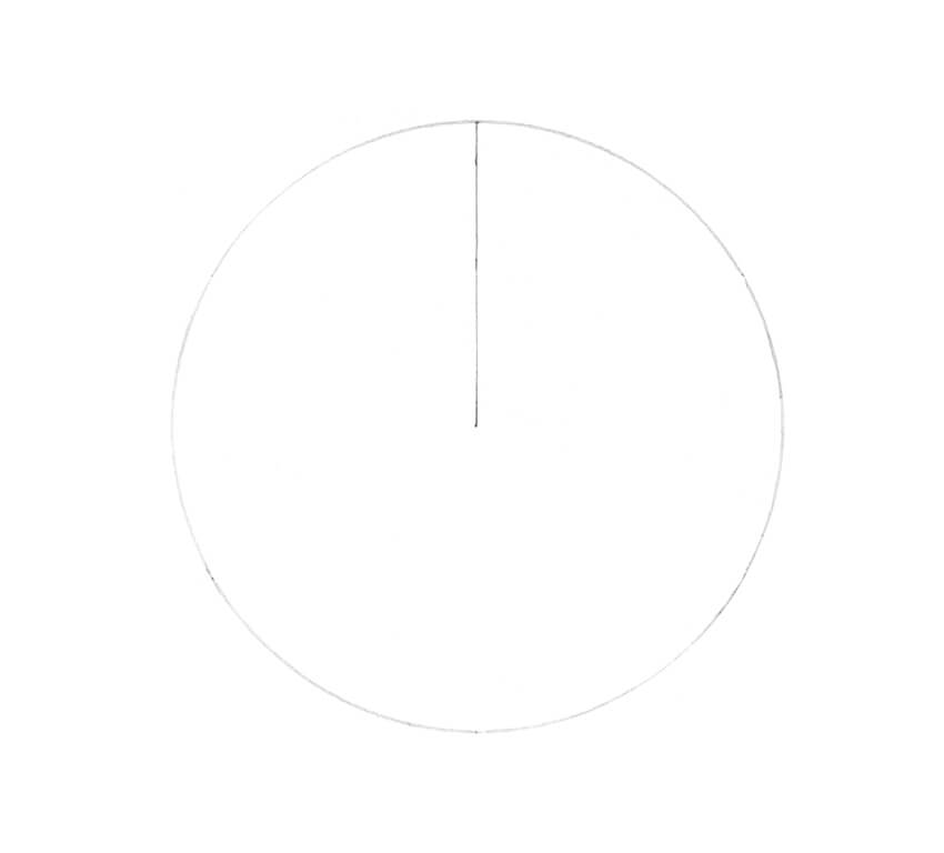 Ze středu kružnice nakreslete rovnou svislou čáru.