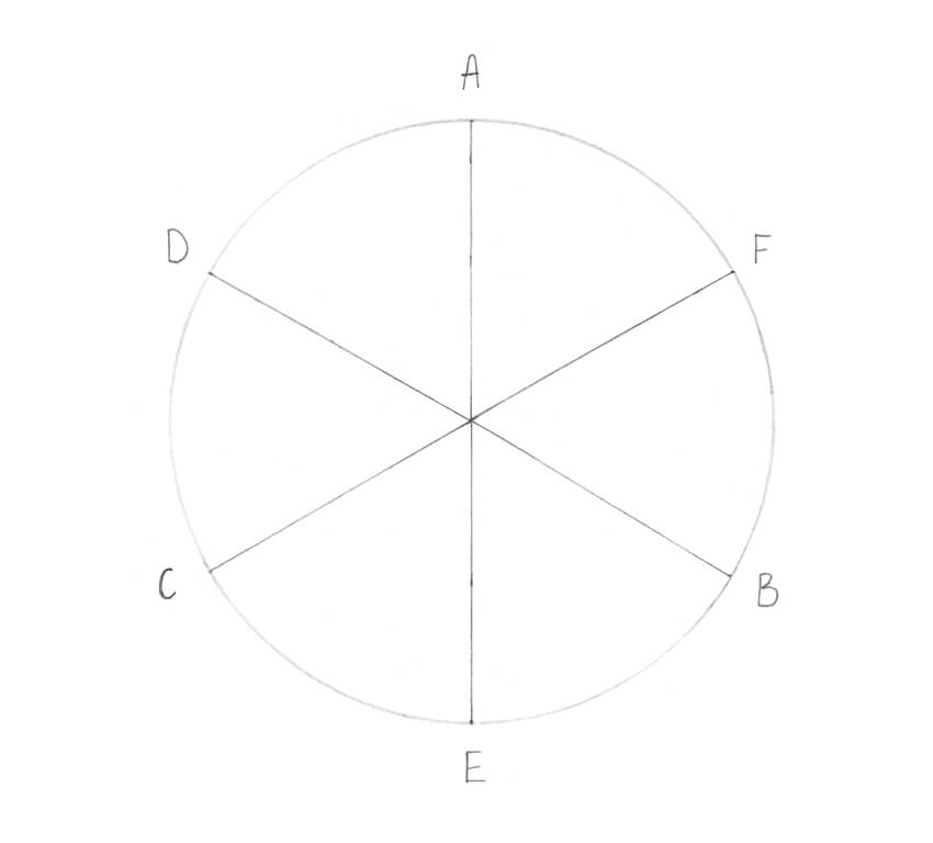 Přidejte zbývající sektory a označte horní část každého sektoru písmenem nebo číslem.