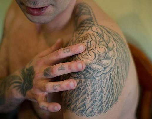 Víra v určitý význam tetování na náramenících změnila význam, a proto může takový náčrtek způsobit, že člověk bude nadměrně agresivní, bude provokovat k nezákonnému jednání a konfliktům s donucovacími orgány.