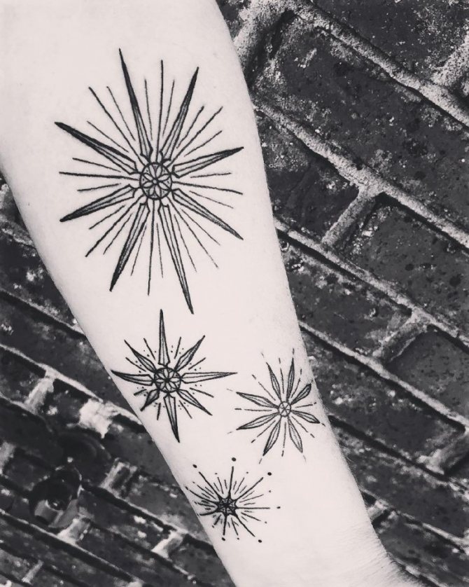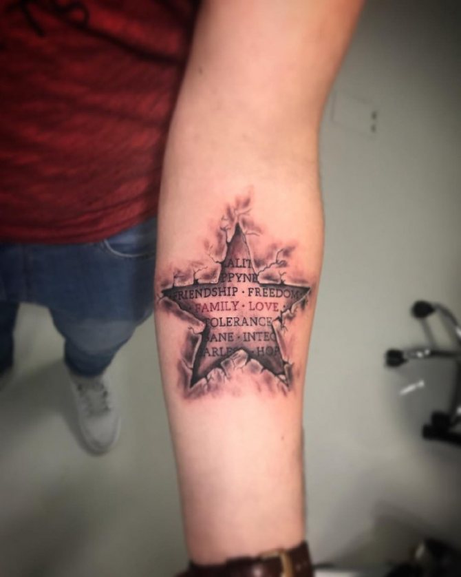 Hvězda může mít různý počet paprsků. Hvězda může mít šest až deset paprsků. Hvězdné tetování na ramenou má nejčastěji osm paprsků.