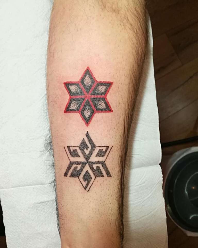 Hvězda může mít různý počet paprsků. Jejich počet se obvykle pohybuje mezi šesti a deseti. Hvězdné tetování na ramenou má nejčastěji osm paprsků.