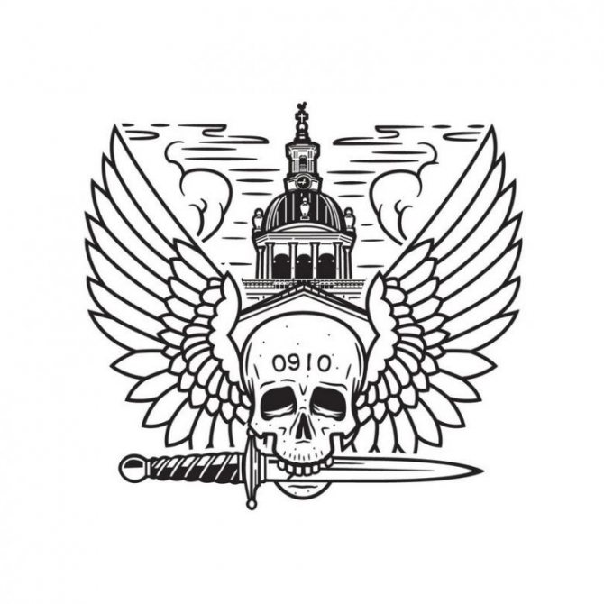 "Kostel - Toto tetování se používá k označení počtu let, které jste strávili ve vězení. Počet kopulí udává, kolik vycházek vězeň absolvoval nebo kolik let si odseděl ve vězení. Ne každý smí mít toto tetování.