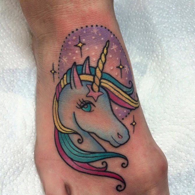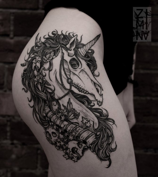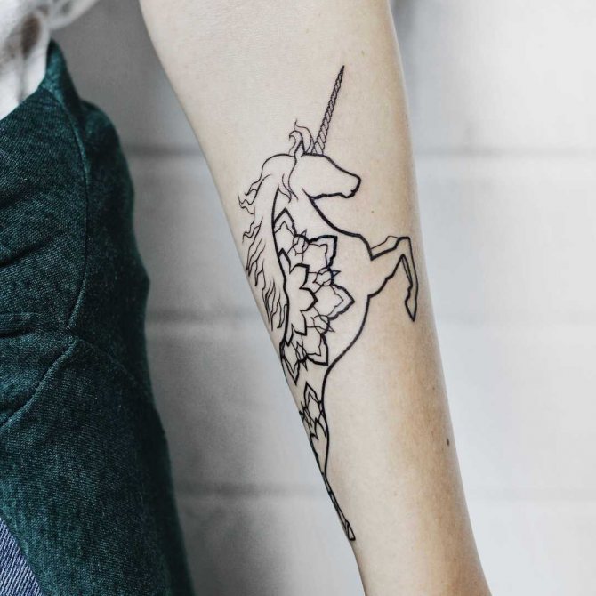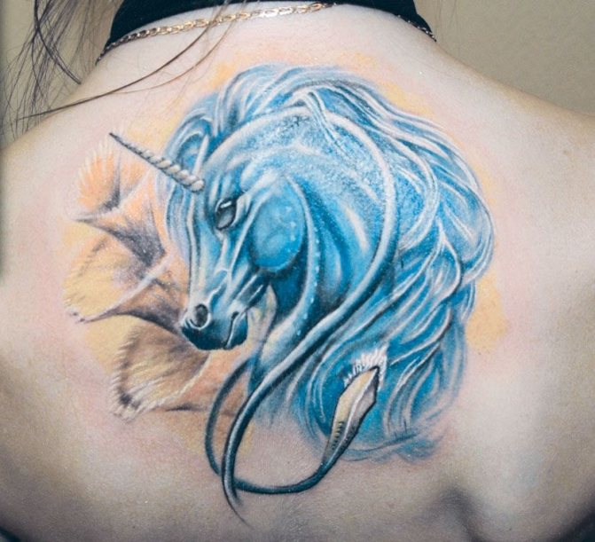 Der er forskellige meninger om betydningen af enhjørningstatoveringen. Symbolikken i dette billede er indhyllet i en mystisk tåge, ligesom enhjørningen selv er det - et af de mest gådefulde dyr i mytologien.