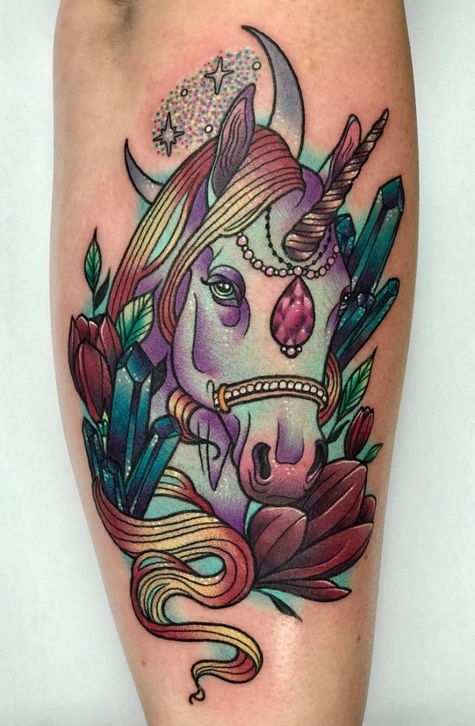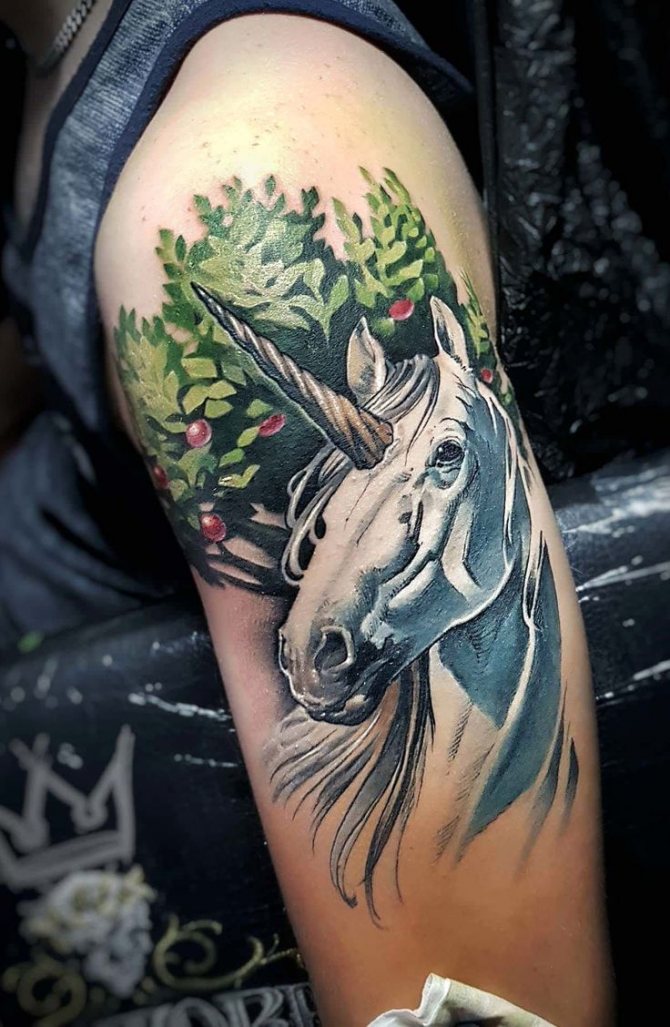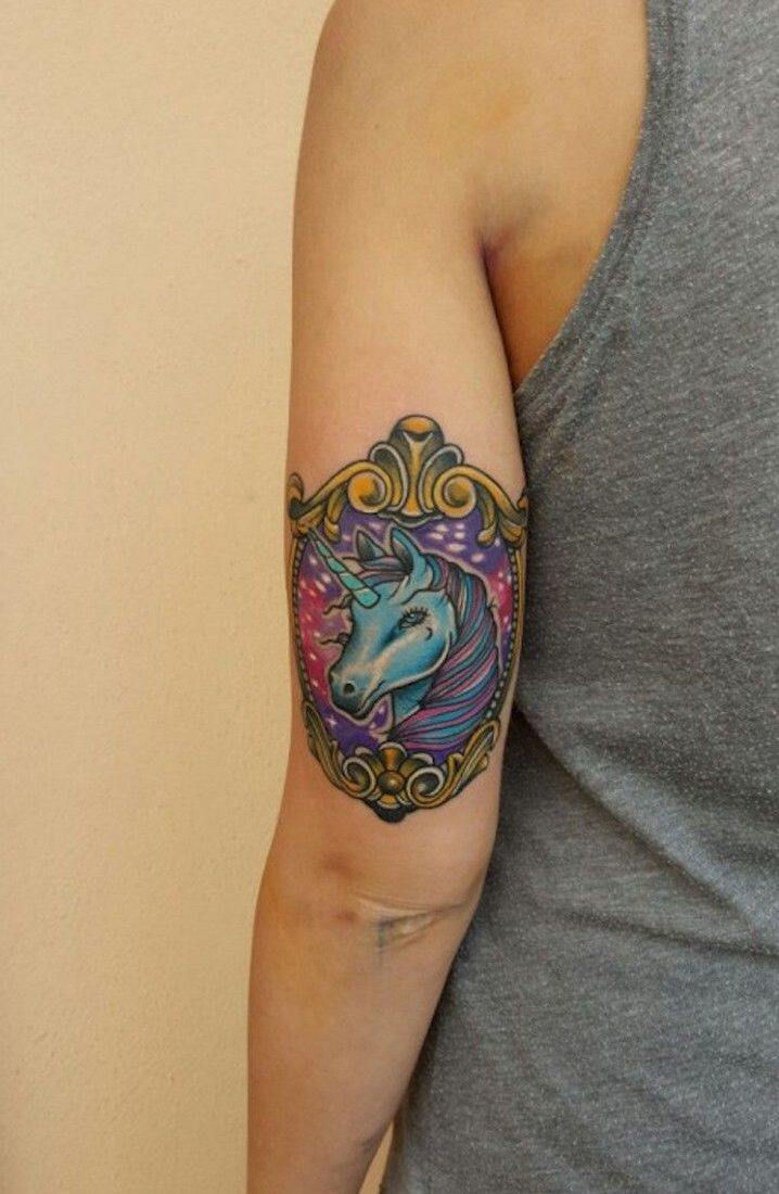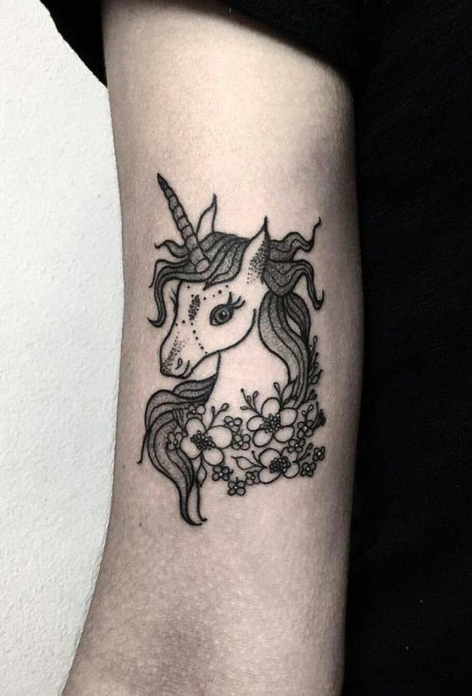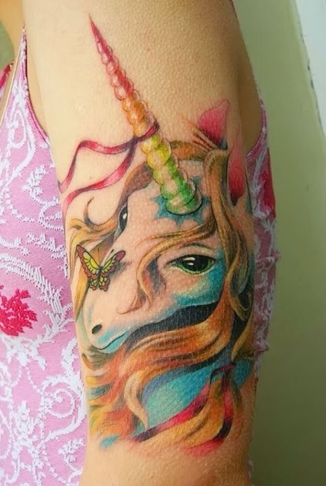 Tatoveringer med en enhjørning ser altid meget smukke og specielle ud. Det er simpelthen umuligt at undgå at lægge mærke til dem.