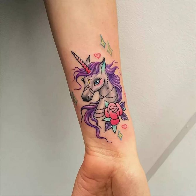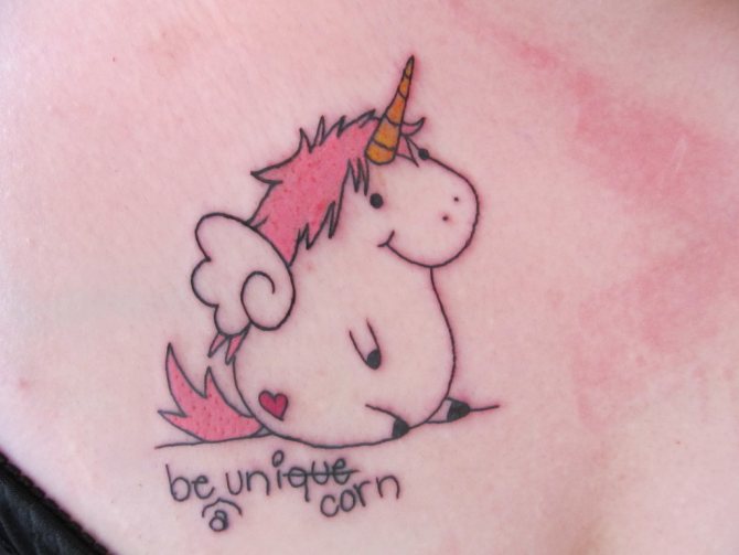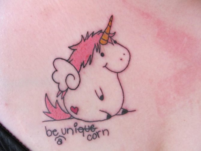 Som du kan se, kan tatoveringen i form af en enhjørning se helt anderledes ud og have en helt anden betydning. Ikke desto mindre fortjener hver af disse muligheder opmærksomhed. Før du beslutter dig for dit valg, skal du derfor se nærmere på alle de mulige variationer af designet.