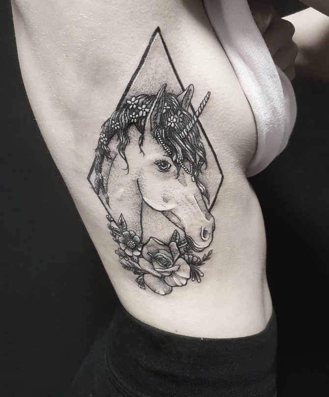 Ofte laver store tatoveringer i form af en enhjørning piger på ryggen eller på ribbenene. Dette gør det muligt at anvende billedet i al sin pragt med en detaljeret tegning af hvert enkelt element. Det ser utroligt smukt ud.