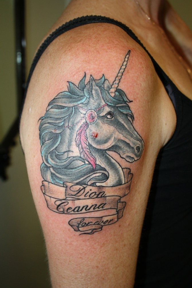 Et portræt af en enhjørning er oftest placeret på skulderbladet, skulderen eller brystet. Det får tatoveringen til at se så spektakulær ud som muligt. Meget afhænger dog af billedets størrelse. Forresten laver piger oftest en sådan tatovering i farver.