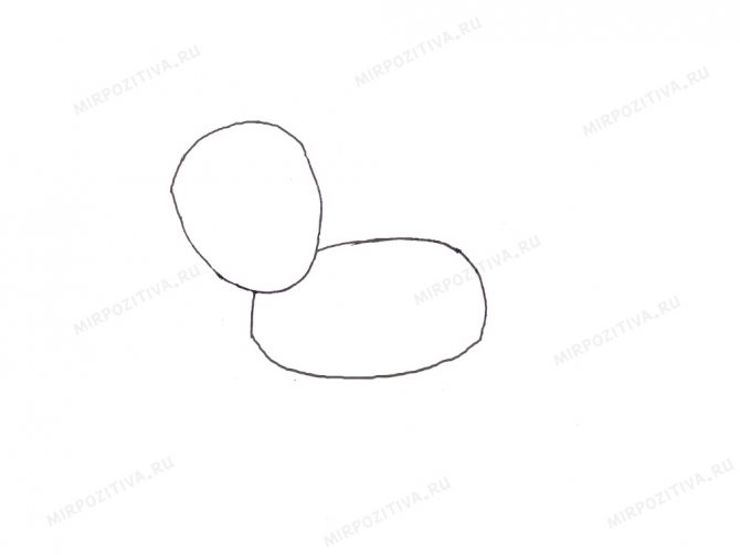 Lav en skitse: et ovalt hoved i en skrå stilling, som ligner et børneansigt. Den skal være let i kontakt med kroppen.
